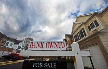 在美國(guó)弗吉尼亞州森特維爾市,一棟待售房屋標(biāo)出“銀行所有”的橫幅,等待買(mǎi)主的光臨。新華社/法新