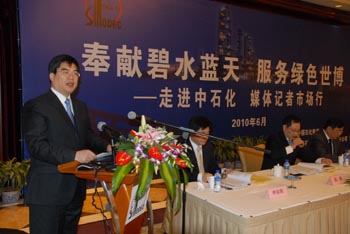 在上海舉辦的“走進(jìn)中石化媒體記者市場行”活動中,中國石化集團(tuán)公司新聞發(fā)言人、股份公司董秘局辦公室主任黃文生表示:“‘奉獻(xiàn)碧水藍(lán)天,服務(wù)綠色世博’,這是中國石化對上海世博會作出的承諾!崩钚旅