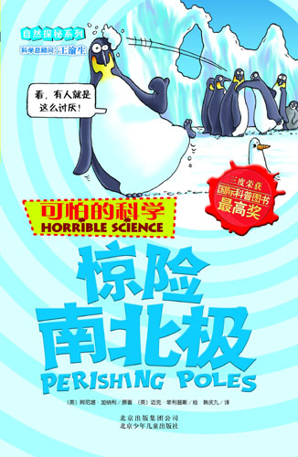 《可怕的科學(xué)·驚險(xiǎn)南北極》封面 | 叫板《十萬(wàn)個(gè)為什么》的洋科普《可怕的科學(xué)》引進(jìn)版書籍在中國(guó)出版,與中式科普讀物問答式的灌輸結(jié)構(gòu)和教科書風(fēng)格反差很大,傳統(tǒng)科普讀物面臨強(qiáng)烈的挑戰(zhàn)。 在四、五年前,幾乎還是《十萬(wàn)個(gè)為什么》一統(tǒng)天下的局面,好幾代人都是看著《十萬(wàn)個(gè)為什么》長(zhǎng)大的。但《可怕的科學(xué)》在一年內(nèi)暢銷3百萬(wàn)冊(cè),在多元科普知識(shí)資訊的時(shí)代,顯示了它的競(jìng)爭(zhēng)力。 在今年的上海書展上,各種各樣紛繁復(fù)雜的科普?qǐng)D書就是一個(gè)明證。僅在以中國(guó)紅為主基調(diào)的一個(gè)展區(qū),就集中陳列了14家出版單位的16000余種科普?qǐng)D書。 眾多科普?qǐng)D書的風(fēng)起云涌,出現(xiàn)了一股科普讀書熱。隨著人們的生活越來越講究科學(xué),少兒科普在整個(gè)少兒圖書市場(chǎng)所占份額越來越大,并使少兒科普市場(chǎng)逐漸成熟。不過,在那些科普?qǐng)D書中,數(shù)量是上來了,質(zhì)量卻沒有提高。在那些科普?qǐng)D書中,引進(jìn)版多,本地科普少;跟風(fēng)拼湊的多,原創(chuàng)佳作少。 《可怕的科學(xué)》曾三獲世界科普?qǐng)D書最高獎(jiǎng)――安萬(wàn)特獎(jiǎng)。這次北京出版集團(tuán)公司首先推出的是“經(jīng)典科學(xué)”和“自然探秘”系列。“經(jīng)典科學(xué)”總共20種,涉及到物理學(xué)、化學(xué)、生物學(xué)等學(xué)科,采用了《能量怪物》、《觸電驚魂》、《時(shí)間揭秘》、《聲音的魔力》等可愛卻瘋狂的名字。 中國(guó)科普研究所高士其基金會(huì)秘書長(zhǎng)高志其先生說,家父高士其先生畢生都為繁榮我國(guó)的科普創(chuàng)作而不懈努力著。從這套系列讀物中,你能知道,植物也是有感覺的;數(shù)學(xué)不再是毫無感情的冷血;鯊魚和細(xì)菌,都可能讓這個(gè)世界既有的運(yùn)行模式發(fā)生改變;有一些看似淺顯的技能,學(xué)會(huì)了,可以受用一生。