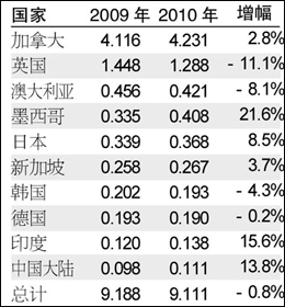 根據(jù)美國商務(wù)部近日公布的數(shù)據(jù),2010年上半年,美國圖書出口額下滑了0.8%,達(dá)到9.111億美元;圖書進(jìn)口總額上漲了7%,達(dá)到8.427億美元。其中,從中國大陸進(jìn)口的圖書總額上漲了16.4%,逾3.43億美元,使中國仍位居美國圖書進(jìn)口國家的首位。