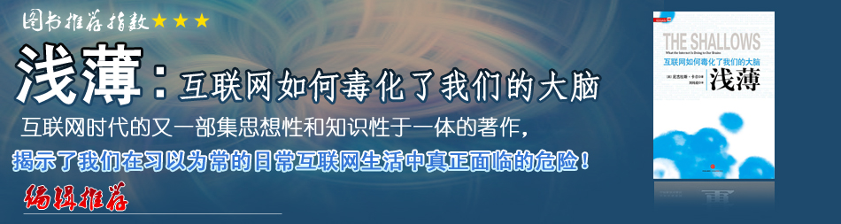| 卡爾讓人心悅誠服地認(rèn)識到,所有的信息技術(shù)都會帶來一種智能倫理。印刷圖書如何讓我們進(jìn)入聚精會神的狀態(tài),從而促進(jìn)深度思維和創(chuàng)造性思維的發(fā)展。相比之下,互聯(lián)網(wǎng)鼓勵我們蜻蜓點(diǎn)水般地從多種信息來源中廣泛采集碎片化的信息,其倫理規(guī)范就是工業(yè)主義,這是一套速度至上、效率至上的倫理,也是一套產(chǎn)量最大化、消費(fèi)最大化的倫理——如此說來,互聯(lián)網(wǎng)正在按照自己的面目改造我們。我們變得對掃描和略讀越來越得心應(yīng)手,但是,我們正在喪失的卻是專注能力、沉思能力和反省能力。在《淺薄》一書中,有智能技術(shù)的發(fā)展歷史,有大眾科學(xué)的普及知識,有文化批判的真知灼見,全書處處閃耀著令人難忘的智慧之光,這些內(nèi)容恰似對我們現(xiàn)代人的心智狀態(tài)所做的全面而深遠(yuǎn)的拷問。。 |