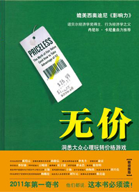 《無(wú)價(jià)》并不好讀,但如果你想了解產(chǎn)品價(jià)格充滿各種陷阱,或者你想讓自己的東西賣個(gè)好價(jià)錢(包括求職時(shí)賣自己),《無(wú)價(jià)》卻又不可不讀。借用營(yíng)銷專家孫路弘在“精讀指導(dǎo)”中的介紹,能讓你我更增加閱讀《無(wú)價(jià)》的欲望:“區(qū)區(qū)249頁(yè),匯集了美國(guó)心理物理學(xué)發(fā)展至今幾乎所有的社會(huì)實(shí)驗(yàn),共57個(gè)。每一個(gè)實(shí)驗(yàn)都有詳細(xì)的描述,其中不少實(shí)驗(yàn)獲得了諾貝爾獎(jiǎng)”。