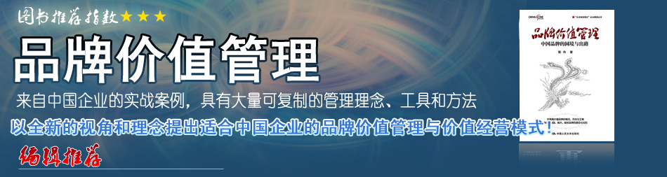 郭偉的新作《品牌價(jià)值管理》對(duì)中國(guó)品牌原創(chuàng)理論和實(shí)踐進(jìn)行了非常堅(jiān)實(shí)且卓有成效的探索,可喜可賀,值得推薦!全書(shū)還歸納出許多企業(yè)品牌建設(shè)的經(jīng)典案例,對(duì)企業(yè)決策者和品牌經(jīng)理人都是非常實(shí)用的教科書(shū)。 |