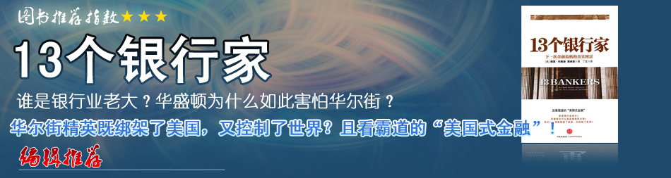 | 看了這本書(shū),感覺(jué)題目有些危言聳聽(tīng),不過(guò)書(shū)的內(nèi)容還算中規(guī)中矩。書(shū)中提到的13個(gè)銀行家實(shí)際上是美國(guó)金融市場(chǎng)的一個(gè)縮影。 |