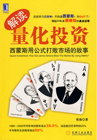 等這三個離開以后,川妹子又把金融投資書架仔細(xì)翻了一遍,關(guān)于這個“席夢思”(川妹子不知西蒙斯為何人,聽發(fā)音像是“席夢思”)的書,一本都沒有。這確實(shí)是一個很耐人尋味的現(xiàn)象,正如同樣身為圈內(nèi)人的忻海在自序中寫道:“雖說他的投資戰(zhàn)績遠(yuǎn)遠(yuǎn)好于索羅斯和巴菲特,但是知道他和他的基金的人卻不多,就連業(yè)內(nèi)人士也是如此!眰中緣由究竟是為什么呢?事實(shí)上,這等于為忻海創(chuàng)造了一個寫作的契機(jī)和動機(jī)——如他所說,《解讀量化投資》試圖通過介紹量化基金行業(yè)里綽號為“埃爾維斯”的詹姆斯·西蒙斯和他的復(fù)興技術(shù)公司以及大獎?wù)禄,透視這個行業(yè)的秘密和行業(yè)內(nèi)形形色色的人物……