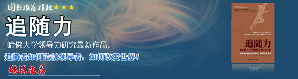 | 這是一本關(guān)于領(lǐng)導(dǎo)學(xué)的書(shū)。作者芭芭拉·凱萊曼在前人研究的基礎(chǔ)上,將追隨者分為孤立型、旁觀型、參與型、主動(dòng)型和頑固型5種類(lèi)型,涵蓋了從完全置身事外的追隨者到深深承諾、全心參與的追隨者,并總結(jié)出5種類(lèi)型追隨者的行為特征,指出領(lǐng)導(dǎo)力和追隨力可以基于相互尊重和信任而產(chǎn)生一種共生關(guān)系,優(yōu)秀領(lǐng)導(dǎo)的職責(zé)是使其追隨者更加積極、有創(chuàng)造性,在需要的時(shí)候能夠提出建設(shè)性的對(duì)策。 |