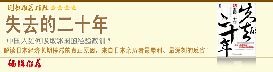 池田信夫的《失去的二十年》,全書共分九章,從日本的現(xiàn)狀、歷史和經(jīng)濟(jì)學(xué)的角度出發(fā),深刻分析甚至顛覆了世界對(duì)日本經(jīng)濟(jì)很多傳統(tǒng)的看法。閱讀《失去的二十年》,不能不對(duì)池田信夫在每章前面引用的名言好好思考,這也是反思中國(guó)經(jīng)濟(jì)的必要提醒…[詳細(xì)]