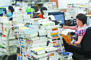 20日下午,工作人員在新首圖一層采編區(qū)內(nèi)對購進的各種新書進行信息采集和分類,為接下來的上架工作做準(zhǔn)備。孫戉攝 |