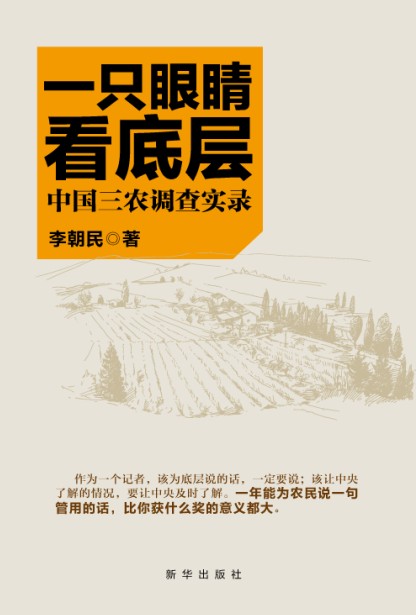 《一只眼睛看底層——中國(guó)三農(nóng)調(diào)查實(shí)錄》一書(shū),近日將由新華出版社出版。該書(shū)作者為《農(nóng)民日?qǐng)?bào)》記者李朝民。作者通過(guò)“聚焦農(nóng)業(yè)”、“田野驕子”、“底層脈動(dòng)”、“微觀樣本”、“瞭望三農(nóng)”等5部分,對(duì)近年來(lái)我國(guó)“三農(nóng)”問(wèn)題進(jìn)行了多側(cè)面的觀察與解讀。