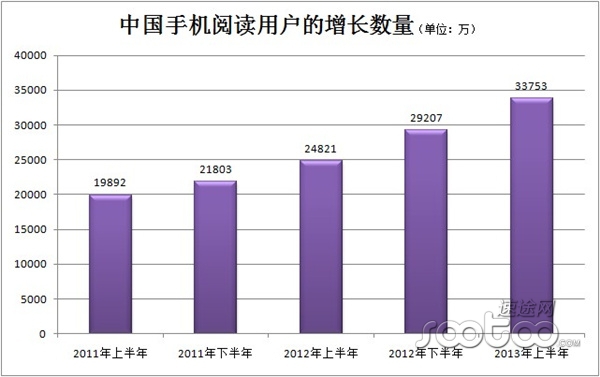 中國手機閱讀用戶增長數(shù)量(速途研究院制圖)
