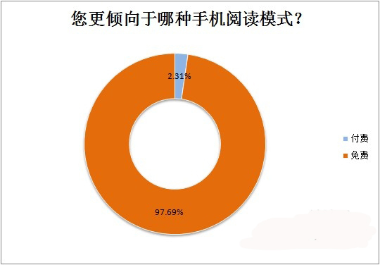 從上面圖表中可以看到,對于手機閱讀來說,用戶并沒有形成付費的習(xí)慣,97.69%的用戶還是傾向于免費閱讀,因而如何改變用戶的付費習(xí)慣,讓用戶能主動的掏錢,是目前閱讀軟件的一個挑戰(zhàn)。