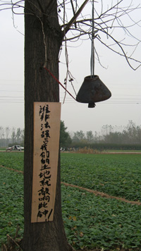 “誰非法侵占我們的土地就敲響此鐘!”面對(duì)越來越多非法圈地者,前不久,河南省中牟縣白沙鎮(zhèn)白墳村村民在本村耕地旁的大樹上立了一口老鐘,以便隨時(shí)召集村民“抵抗”非法占地者。新華社記者:單純剛