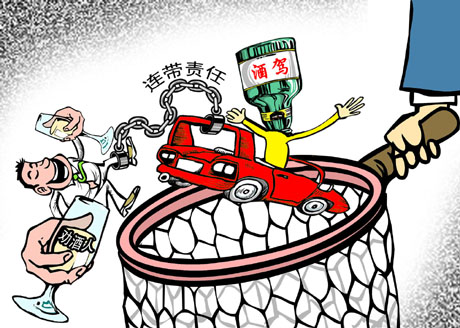 為進(jìn)一步加大酒后駕駛打擊力度,南京市從8月15日起組織開(kāi)展為期兩個(gè)月的酒后駕駛違法行為集中整治行動(dòng)。同時(shí),相關(guān)部門將聯(lián)合出臺(tái)長(zhǎng)效機(jī)制嚴(yán)禁酒后駕車,其中同桌勸駕駛?cè)孙嬀苹蛲嚸髦{駛?cè)司坪篑{車不及時(shí)主動(dòng)勸阻制止的,將通報(bào)相關(guān)單位和主管部門予以內(nèi)部處理,情節(jié)嚴(yán)重的要媒體公開(kāi)曝光并追究連帶責(zé)任。(據(jù)《長(zhǎng)江商報(bào)》)張兮兮