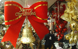 義烏圣誕商品市場(chǎng)展示的一種蝴蝶型圣誕鈴鐺吊飾。據(jù)杭州海關(guān)統(tǒng)計(jì),今年1至10月份,義烏市共出口圣誕商品3790萬(wàn)美元,同比增長(zhǎng)42.6%;貨物總量9869噸,比去年同期增長(zhǎng)35.5%。據(jù)了解,全球已有美國(guó)、俄羅斯、英國(guó)和巴西等100多個(gè)國(guó)家從義烏直接進(jìn)口各種圣誕商品。本報(bào)記者