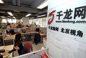 | 2000年2月成立的千龍網(wǎng)是國內(nèi)第一家由國務(wù)院新聞辦公室批準成立的政府新聞網(wǎng)站。千龍網(wǎng)成立初期正值網(wǎng)絡(luò)媒體興起的時期,活躍在網(wǎng)絡(luò)媒體潮頭的千龍網(wǎng)創(chuàng)造了輝煌的戰(zhàn)績。新華社記者