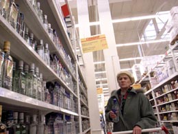 10月31日,一名消費者在俄羅斯首都莫斯科一家超市選購酒。俄羅斯各地自2006年8月以來一再發(fā)生假酒中毒事件,目前中毒人數仍在不斷增加,其中已有118人死亡。