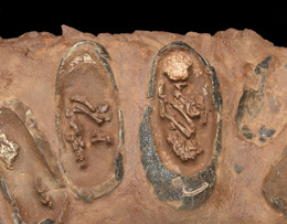 據(jù)報道,這些年代久遠的恐龍蛋化石保存狀態(tài)相當好,每枚蛋長約12.7厘米,寬約7.6厘米,其中19枚恐龍蛋中還含有初具雛形的小恐龍胚胎,一些蛋內(nèi)彎曲的恐龍胚胎清晰可見。