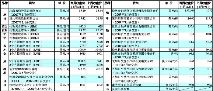 受油價(jià)反彈影響,當(dāng)周貴金屬及基本金屬價(jià)格全線上揚(yáng)。26日,黃金期貨價(jià)格漲至每盎司645.5美元,為六個(gè)月以來(lái)最高。對(duì)此分析人士指出,出于保值考慮,黃金需求將進(jìn)一步擴(kuò)大,這無(wú)形中將會(huì)加大通貨膨脹的危險(xiǎn);窘饘僦,除鋅價(jià)有所回落外,鎳、錫、銅、鋁和鉛的價(jià)格均有不同幅度上漲,其中鎳價(jià)和錫價(jià)繼續(xù)創(chuàng)下新高。