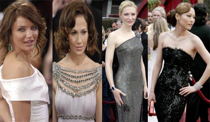 早在今年奧斯卡獎提名宣布之前,夏奈爾、阿瑪尼、范思哲等歐洲知名時尚品牌便著手網(wǎng)羅為其代言的人選。除了那些大名鼎鼎的影星外,嶄露頭角的新人也往往是時尚品牌激烈爭奪的對象。今年因出演奧斯卡大獎熱門影片《巴別塔》而獲得最佳女配角獎提名的日本演員菊地凜子已經(jīng)被夏奈爾公司鎖定,她在本電影評獎季中每次公開場合穿的禮服都出自該公司首席設(shè)計師卡爾·拉格菲爾德之手。而阿瑪尼公司則有意讓有“精靈女王”之稱的凱特·布萊切特為其效力。布萊切特曾在兩年前獲得奧斯卡最佳女配角獎,今年她不僅也參加了《巴別塔》一片的演出,并且還憑借在影片《丑聞筆記》中的表演再次獲得最佳女配角提名。對獨特穿著風(fēng)格孜孜以求的布萊切特一直成為娛樂與時裝媒體的關(guān)注焦點。時裝設(shè)計大師喬治·阿瑪尼就對布萊切特十分欣賞,稱她是好萊塢最有才氣和最富有靈感的女影星之一。此外,范思哲公司的掌門人唐娜泰拉更是早早就從公司的意大利總部奔赴好萊塢,這位從其兄長手中繼承了范思哲時裝帝國的女設(shè)計師要親自物色為公司代言的影星。