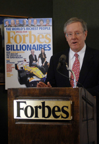 《福布斯》雜志總編輯史蒂夫·福布斯作出判斷:“在我們這個(gè)地球上,更多的人經(jīng)濟(jì)狀況好于以往……這(2006年)是人類歷史上最為富足的年份。” 《福布斯》雜志編輯說(shuō),單純?nèi)《雀缓狸J入排行榜的前20名,“就是一段非同尋常的故事”。 |