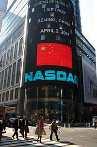 4月4日,全球最大的電子股票交易所——美國納斯達(dá)克股票市場公司正式宣布推出納斯達(dá)克中國指數(shù)(NASDAQ China