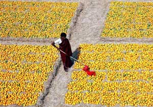 在印度海得拉巴的一處水果批發(fā)市場(chǎng)里,一位賣主在清理桔子。印度位于南亞地區(qū),盛產(chǎn)熱帶以及亞熱帶水果。經(jīng)濟(jì)參考報(bào)資料照片 |