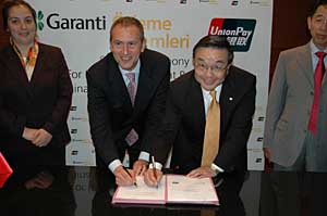 中國(guó)銀聯(lián)與土耳其擔(dān)保銀行11日在土耳其最大城市伊斯坦布爾簽署中國(guó)銀聯(lián)卡發(fā)卡協(xié)議,由受理領(lǐng)域擴(kuò)展到發(fā)卡領(lǐng)域,這標(biāo)志著雙方合作正走向深入。