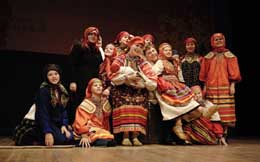 中俄家庭聯(lián)歡演出2日在莫斯科維什涅夫斯卡婭歌劇中心舉行,該演出是第四屆中俄婦女文化周的一項重要內(nèi)容,來自中俄兩國的10多個家庭表演各具特色的節(jié)目。來自梁贊地區(qū)斯科賓市的“極限”家庭組合,表演了短劇《俄羅斯紅色角落》片段,充分展示了民族服裝特色。