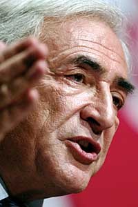 斯特勞斯-卡恩。本報資料照片 | 國際貨幣基金組織(IMF)新總裁的人選問題10日泛起波瀾。 當天,歐盟27國財長基本同意推舉法國前財政部長多米尼克·斯特勞斯-卡恩接任國際貨幣基金組織總裁一職。但國際貨幣基金組織執(zhí)行董事會卻在同日發(fā)表的一份聲明中表示,該組織新總裁人選將不受國籍限制,任何一名執(zhí)董會成員都可提名自己中意的總裁人選。這份聲明所傳達的信息無疑為IMF新總裁的人選問題增添了不少變數(shù)。 現(xiàn)任國際貨幣基金組織總裁西班牙人羅德里戈·拉托的任期應到2009年5月,但他在6月28日突然宣布,出于“個人原因”,他本人將于今年10月提前離職。 按照慣例,國際貨幣基金組織總裁由歐洲人擔任,而世界銀行行長則由美國人擔任。不過,一些發(fā)展中國家認為,這種傳統(tǒng)有悖公平,在他們的要求下,國際貨幣基金組織理事會將于下星期在華盛頓開會討論此事。 歐盟財長會議9日在布魯塞爾舉行,路透社援引歐盟輪值主席國葡萄牙政府官員的話說,歐盟各國的財長們在10日的午餐會上討論了國際貨幣基金組織總裁的人選問題。此前,法國總統(tǒng)薩科齊提議,由法國前財政部長多米尼克·斯特勞斯-卡恩接替拉托。路透社援引一些外交人士的話說,薩科齊的這一舉動明顯是想在其他候選人名字浮出水面前占得先機。另有批評者指出,薩科齊提名這位在野黨的重要人物,其目的在于削弱社會黨在法國國內(nèi)的力量。 10日當天,歐盟輪值主席國葡萄牙在財長會議結(jié)束前披露給媒體的消息中說,推選斯特勞斯-卡恩擔任這一職務(wù)已獲得歐盟財長們的首肯。法國財長克里斯蒂娜·拉加德也在會議間隙向媒體記者證實,斯特勞斯-卡恩已成為歐盟推舉的國際貨幣基金組織新總裁正式人選。拉加德說,斯特勞斯-卡恩因為具備過人的才干和豐富的國際事務(wù)經(jīng)驗,贏得了其他成員國的廣泛支持。 不過,國際貨幣基金組織執(zhí)行董事會當天發(fā)表聲明表示,該組織新總裁人選將不受國籍限制,任何一名執(zhí)董會成員都可提名自己心目中的總裁人選。聲明稱,國際貨幣基金組織將采取“開放和透明”方式盡快選出新總裁,而總裁提名對所有國籍人士開放,這符合該組織的相關(guān)規(guī)定。就在歐盟決定推舉斯特勞斯-卡恩的當口兒,國際貨幣基金組織執(zhí)行董事會作出這一表態(tài),對歐盟來說無疑是個巨大挑戰(zhàn),給新任國際貨幣基金組織總裁人選增加了不少變數(shù)。 事實上,就在歐盟此次推舉基金組織新總裁人選的過程中,外界呼吁應當打破舊規(guī)矩,考慮由非歐洲人接任。英國財政大臣阿利斯泰爾·達林就表示,基金組織總裁的選任應當任人唯賢,而不應再局限于歐洲人。 另據(jù)英國廣播公司報道,歐盟各成員國也在此次財長會議上同意,今后基金組織總裁人選將向非歐洲國家開放。 斯特勞斯-卡恩現(xiàn)年58歲,曾于1997年至1999年在利昂內(nèi)爾·若斯潘領(lǐng)導的政府中任財政部長。