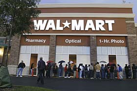 | 圖為美國(guó)芝加哥市民排隊(duì)進(jìn)入沃爾瑪購(gòu)物。本報(bào)資料照片 | 美國(guó)《財(cái)富》雜志7月23日一期將刊登2007年全球500強(qiáng)排行榜,根據(jù)其提前公布的排行榜榜單,盡管較去年有所變化,沃爾瑪、埃克森美孚等全球知名企業(yè)均仍高居各榜單榜首位置,中國(guó)國(guó)家電網(wǎng)公司、中石油、中石化等眾多中國(guó)企業(yè)也位于各排行榜前列。