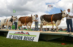 | 7月底在比利時南部小城利布拉蒙舉行的第73屆歐洲農業(yè)博覽會上,參會者向觀眾展示奶牛。本報記者 徐金泉