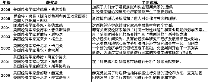 近年諾貝爾經濟學獎得主及成就