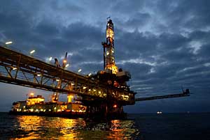 | 圖為安哥拉海岸外石油鉆井平臺夜景。本報資料照片 | 美國再成最大外資接受國