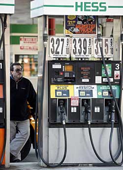 | 7日,一名男子在美國(guó)紐約的一個(gè)加油站加油。當(dāng)日紐約原油期價(jià)盤(pán)中創(chuàng)98.62美元?dú)v史新高。新華社/路透 | 投機(jī)吹脹油價(jià)泡沫