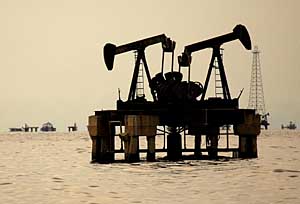 | 圖為委內(nèi)瑞拉馬拉開波湖上的石油開采設備。本報資料照片 | 本報羅馬電