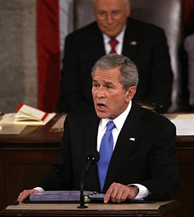 | 28日,美國(guó)總統(tǒng)布什在華盛頓的美國(guó)國(guó)會(huì)大廈發(fā)表2008年國(guó)情咨文講話。新華社/路透 | 刺激經(jīng)濟(jì)方案亟須出爐