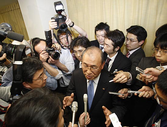 2月19日,東芝公司總裁兼首席執(zhí)行官西田厚聰在日本東京舉行的新聞發(fā)布會上被記者包圍。當天,東芝正式宣布全面退出高清DVD(HD DVD)業(yè)務,而新一代DVD制式之爭將以索尼的藍光(BLUE RAY)技術陣營獲勝告終。新華社/路透