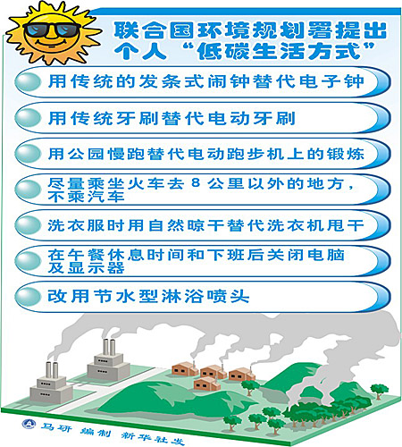 聯(lián)合國環(huán)境規(guī)劃署提出個(gè)人“低碳生活方式”