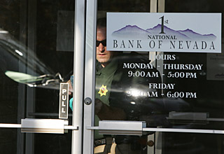 | 25日,在美國內(nèi)華達(dá)州首府卡森城的內(nèi)華達(dá)州第一國民銀行,一名調(diào)查人員鎖上大門。新華社/美聯(lián) | 對(duì)美國銀行業(yè)來說,這個(gè)夏天格外“冷”。7月初,加利福尼亞州印地麥克(IndyMac)銀行因財(cái)政困難被聯(lián)邦政府接管,成為美國歷史上第三大破產(chǎn)銀行。25日,又有兩家小銀行——內(nèi)華達(dá)州的第一國民銀行和加州的第一傳統(tǒng)銀行宣布破產(chǎn)。至此,今年以來美國已有7家銀行破產(chǎn)。