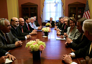 | 18日,在美國首都華盛頓,美國財(cái)政部長保爾森(左三)、美聯(lián)儲(chǔ)主席伯南克(左二)與美國國會(huì)領(lǐng)導(dǎo)人舉行閉門會(huì)談。新華社/路透 | 華爾街日前的“金融海嘯”讓美國金融體系重新洗牌,也迫使美國政府迅速推出新的救援計(jì)劃,擬動(dòng)用7000億美元的資金購買金融機(jī)構(gòu)不良資產(chǎn),這也是上世紀(jì)30年代經(jīng)濟(jì)大蕭條以來美國政府最龐大的救援計(jì)劃。 美國政府此舉也是迫不得已。美國素來標(biāo)榜自己是自由市場經(jīng)濟(jì),但隨著次貸危機(jī)向縱深發(fā)展,房利美、房地美、雷曼兄弟、美國國際集團(tuán)等眾多金融巨頭倒下,市場信心瀕于崩潰。 據(jù)美國官員透露,美國財(cái)政部過去數(shù)周一直在研究這項(xiàng)計(jì)劃,但因顧慮可能遭到外界強(qiáng)烈反對(duì)一直秘而不宣;但由于近來華爾街局勢急轉(zhuǎn)直下,為防范危機(jī)進(jìn)一步蔓延,政府已別無選擇。美國總統(tǒng)布什解釋說,他最初也希望讓市場發(fā)揮作用,但“當(dāng)認(rèn)識(shí)到問題正變得多么嚴(yán)重時(shí)”,他決定必須采取這一措施,否則美國將為此付出更大代價(jià)。 在公布金融救援計(jì)劃前,美國財(cái)政部長保爾森、美國聯(lián)邦儲(chǔ)備委員會(huì)主席伯南克和布什進(jìn)行了緊急磋商;保爾森等官員隨后又拜會(huì)多位資深議員,爭取到了他們的支持。 保爾森的計(jì)劃核心是為華爾街“止血”——政府投入7000億美元,低價(jià)購買金融機(jī)構(gòu)的住房和商業(yè)抵押貸款等不良資產(chǎn),待市場初步穩(wěn)定后,政府再將這些資產(chǎn)出售給市場。保爾森說,這些不良資產(chǎn)是造成目前金融危機(jī)的癥結(jié)所在。 曾參與1979年克萊斯勒公司救助計(jì)劃的美國前政府高級(jí)官員羅格·阿爾特曼也表示,盡管目前金融環(huán)境艱險(xiǎn),但“經(jīng)過這一過渡期后,政府最終完全有可能獲得償還”。 金融救援計(jì)劃極大地振奮了投資者的信心,也推動(dòng)全球股市大幅反彈。但大量財(cái)政開支,無疑會(huì)使美國下屆政府背上沉重的債務(wù)包袱,加重美國的財(cái)政困難。美國參議員理查德·謝爾比認(rèn)為,政府救市總耗資可能達(dá)到1萬億美元。一旦政府出售資產(chǎn)不能盈利,巨額虧損將是納稅人買單?▋(nèi)基-梅隆大學(xué)政治經(jīng)濟(jì)學(xué)學(xué)者艾倫·梅爾策認(rèn)為,當(dāng)前的金融危機(jī)并非納稅人的問題,而保爾森提出的救援計(jì)劃要耗費(fèi)數(shù)千億美元資金,“這是最糟糕的社會(huì)民主”。 一些國會(huì)議員則認(rèn)為,美國政府現(xiàn)在是為華爾街大亨買單,卻對(duì)普通美國人的損失視而不見,這種忽視“道德風(fēng)險(xiǎn)”的行為將加劇市場的投機(jī)風(fēng)險(xiǎn),為新的危機(jī)埋下隱患。眾議院金融服務(wù)業(yè)委員會(huì)主席巴尼·弗蘭克說,該計(jì)劃只讓一些金融從業(yè)者直接受益,“我們應(yīng)該討論一下那些非私有領(lǐng)域的民眾的受益情況”。 次貸危機(jī)爆發(fā)一年來,美國政府的數(shù)次救市行為未能根本扭轉(zhuǎn)市場走勢,而今后的救援計(jì)劃能否見效還有待觀察,美國經(jīng)濟(jì)仍存在很大不確定性。不過,從積極角度看,如果美國政府隨后舉措得當(dāng),華爾街也有可能在劇烈動(dòng)蕩中迎來“轉(zhuǎn)折點(diǎn)”。 |