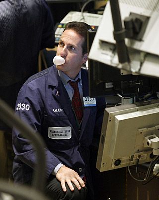 | 10日,美國(guó)紐約證券交易所內(nèi)一名交易員吹泡泡糖。當(dāng)日,由于投資者對(duì)經(jīng)濟(jì)疲軟導(dǎo)致公司盈利下滑的擔(dān)憂抵消了中國(guó)宣布巨額經(jīng)濟(jì)刺激計(jì)劃的利好影響,紐約股市道瓊斯、標(biāo)準(zhǔn)普爾和納斯達(dá)克三大股指均小幅下跌。新華社/路透 | 中國(guó)政府近日出臺(tái)進(jìn)一步擴(kuò)大內(nèi)需、促進(jìn)經(jīng)濟(jì)增長(zhǎng)的措施,以抵御世界金融危機(jī)對(duì)中國(guó)的不利影響。措施出臺(tái)后,國(guó)際社會(huì)評(píng)價(jià)積極,市場(chǎng)反應(yīng)激烈。