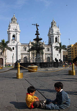 15日,兩名兒童在秘魯首都利馬老城的馬約爾廣場上玩耍。始建于1535年的利馬是秘魯?shù)恼、?jīng)濟(jì)和文化中心,集中了全國1/4以上的人口,城區(qū)分為新城和老城兩部分。其中位于西北部的老城保留了大量殖民地時(shí)期的建筑,已被列入“世界文化遺產(chǎn)”。11月22日至23日,亞太經(jīng)合組織(APEC)第16次領(lǐng)導(dǎo)人非正式會(huì)議將在秘魯首都利馬舉行。新華社記者