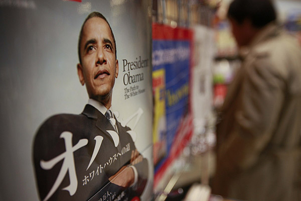 22日,在日本最大的圖書集散地——東京神田書店街,一位讀者在選購美國新任總統(tǒng)奧巴馬的相關圖書。自奧巴馬當選美國總統(tǒng)以來,其傳奇經(jīng)歷在日本圖書界刮起了一陣旋風,各大書店不約而同地購進與其相關的圖書,銷售一路看漲。