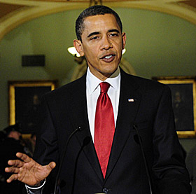 | 1月27日,美國總統(tǒng)奧巴馬在國會出席記者會。當日,美國總統(tǒng)奧巴馬在華盛頓國會山與共和黨領(lǐng)導(dǎo)人共同商討經(jīng)濟復(fù)興計劃。
