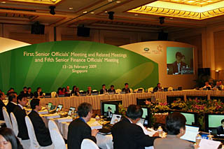 | 圖為16日,2009年亞太經濟合作組織第一次高級官員會議現(xiàn)場。本報記者