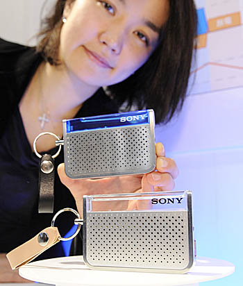 25日,在日本首都東京舉行的國(guó)際氫能源與燃料電池展覽會(huì)上,一名索尼公司員工展示該公司新推出的甲醇燃料電池樣品。索尼公司在展覽會(huì)上發(fā)布了多款環(huán)保型燃料電池和生物電池。新華社/法新