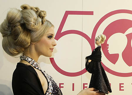 芭比50歲了。 從最初綁著馬尾辮、身穿黑白斑馬紋泳裝的青澀女孩,到如今風(fēng)情萬種的“千面女郎”,芭比贏得了無數(shù)女孩的芳心,F(xiàn)在每秒鐘就有3個(gè)芭比娃娃在世界的某一個(gè)角落售出。 然而,從誕生之日起,她就充滿了爭議和話題,有人愛之,有人恨之。和麥當(dāng)娜、瑪麗蓮·夢(mèng)露一樣,芭比已成為美國的文化符號(hào)。