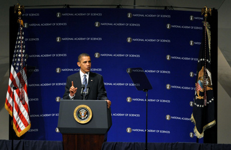 27日,美國總統(tǒng)奧巴馬在美國國家科學(xué)院第146屆年會上發(fā)表演講,宣布政府會在科學(xué)研究和改善科學(xué)教育方面投入更多的資金。新華社/伽瑪 |
