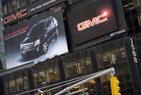 在美國紐約曼哈頓拍攝的通用公司的汽車廣告。新華社/法新 |