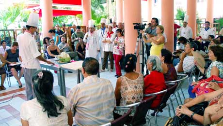 2日,中餐廚師在古巴首都哈瓦那展示技藝。作為第十二屆海外華人節(jié)的一個(gè)組成部分,中國廚藝展示當(dāng)日在哈瓦那舉行。來自哈瓦那各中餐館和12個(gè)華人社團(tuán)的廚師一展風(fēng)采,紛紛拿出絕活,為公眾奉獻(xiàn)出20道美味菜肴,受到在場公眾的熱烈贊揚(yáng)。